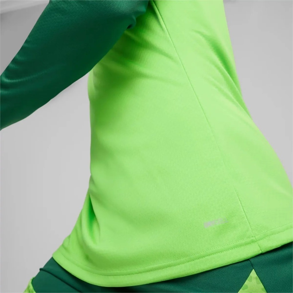 Apresenta as marcas Palmeiras e PUMA e foi tratado com tecnologia de absorção de umidade projetada para ajudar a mantê-lo seco enquanto treina.