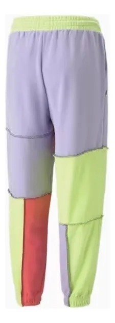 Essas calças de moletom seguem o tema, com visual patchwork assimétrico e pespontos contrastantes por toda parte.