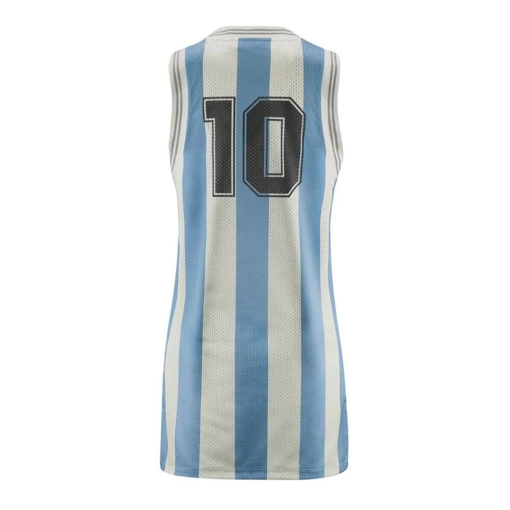 Vestido Adidas Originals seleção Argentina, faz parte de uma edição especial em homenagem a grande seleção da Copa de 90. Também pode ser utilizado como regata/batinha com calça legging. De estilo retrô, as fãs do futebol argentino e da Adidas ficarão apaixonadas.